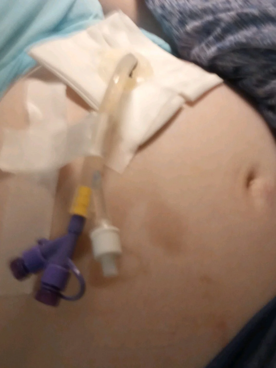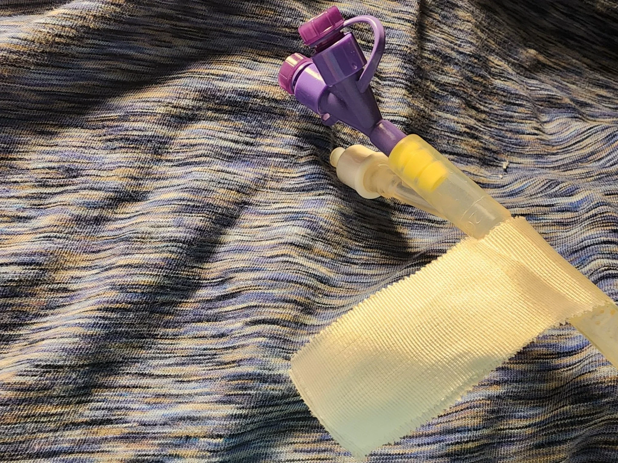 The #1 most annoying thing about a PEG tube is that you have a tube hanging out of your abdomen. It does NOT feel good to accidentally tug it and doing so may even pull it out! If you don't want to buy something to secure it to you or need to secure it to your body at the last second/temporarily, this is the trick for you!
