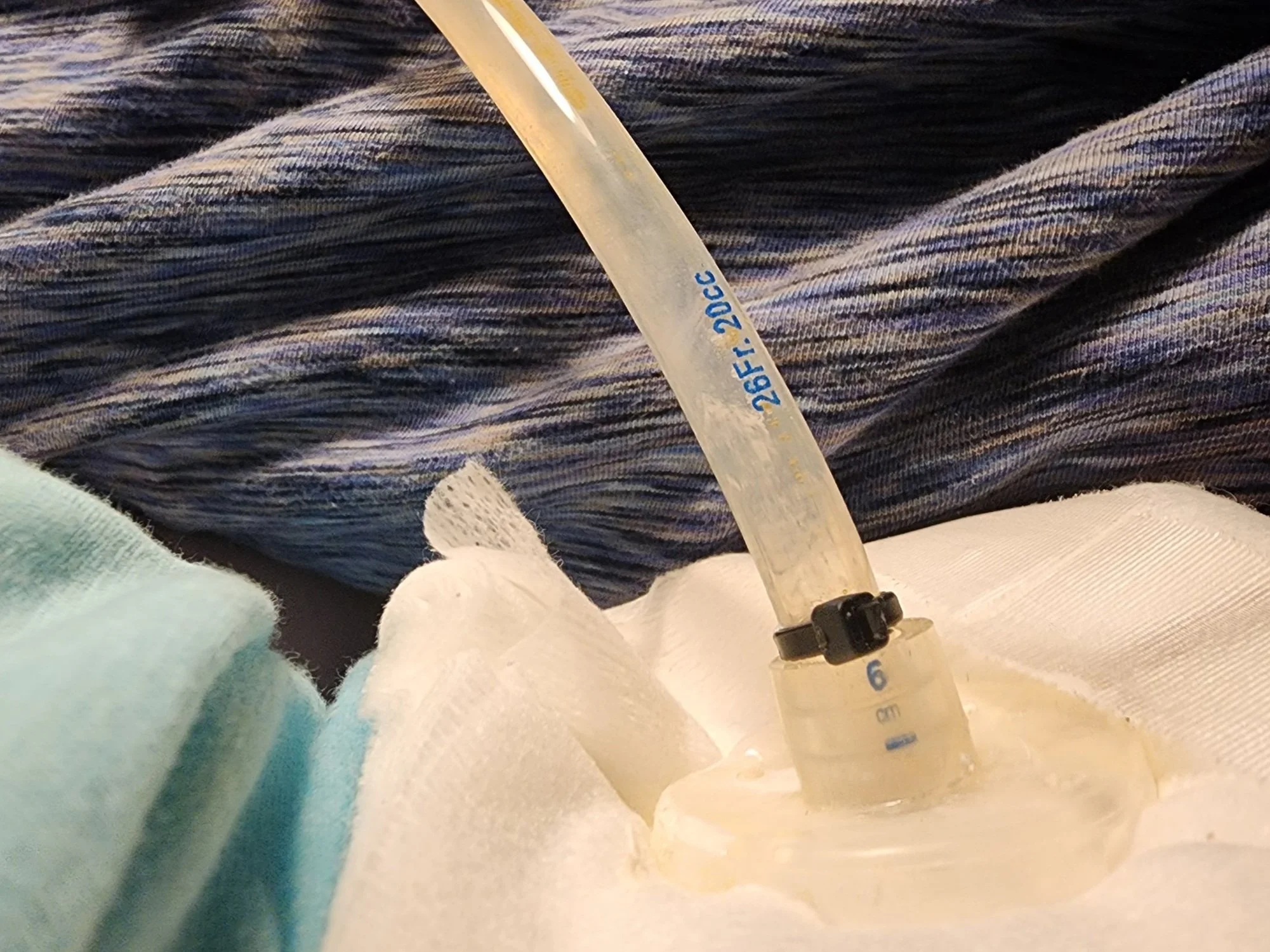 This is a good two-for-one hack for people with abdominal muscle issues, post orthostatic hypotension, abdominal swelling, etc: wear an abdominal binder! This ensures the tube will stay against your body and protects it from accidental tugging. When the tube was initially placed, you wore an abdominal binder - here's to putting it to use again!